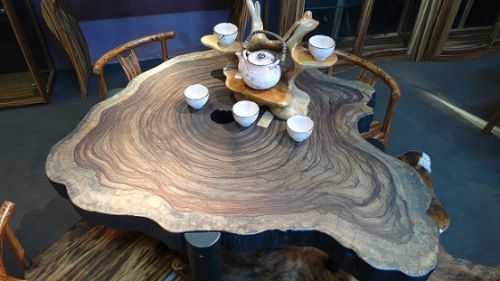 乌金木不仅肌理独特,脾气也让人琢磨不透,在干燥和加工的过程中,它常常会自行爆裂。因为要根据开裂的状况进行设计,而非批量生产,所以每一件作品都是独一无二的,就有了收藏的意义。