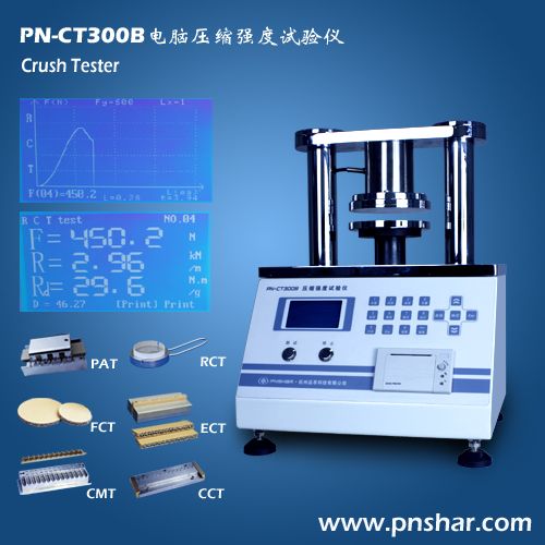 PN-CT300压缩强度测试仪(也叫环压仪,压缩仪,边压仪),是杭州品享公司按国家标准规定研究开发的一种新型高精度检测仪器。主要适用于厚度为0.15~1.00mm的纸张环压强度(RCT);瓦楞纸板边压强度(ECT)、平压强度(FCT)、粘合强度(PAT)及直径小于60mm纸芯平压强度(CMT)等的测试,是目前国内性价比非常高的一款高精度压缩强度测试仪器。
