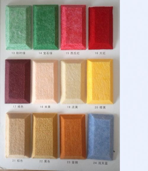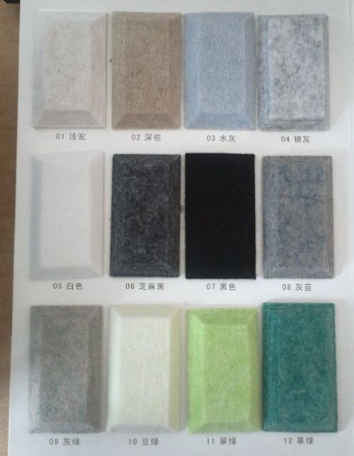 吸音板,是以100%聚酯纤维为原料,经热压成形,由于着色丝生产批号不同,在光的作用下,易产生微小的色差;因此,在进货时尽量采用同一批号生产的聚脂纤维吸音板,