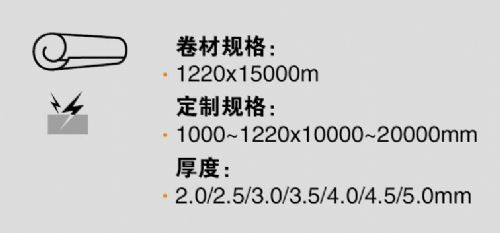 • 规格:卷材2.0至4.0mm 片材2.0至6.0mm