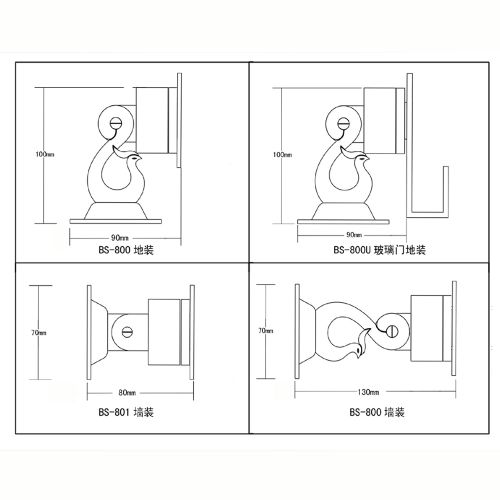 磁铁一般安装在墙面或地上的预定位置,并能水平左右自由转动