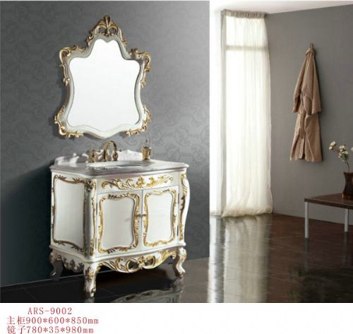 8、采用古典欧式的风格设计,做旧的金箔实木雕刻配合曲线优美的柜体造型,使整个柜体散发着浓厚的欧式古典气息。浴室柜采用天然