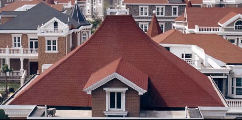 多彩玻纤瓦屋面的导热系数低,阻断了热量在夏天由外向内的传导,在冬天由里向外的散失,从而保证了顶层住户的舒适生活。