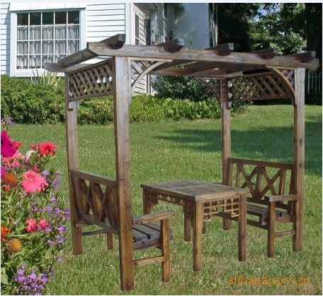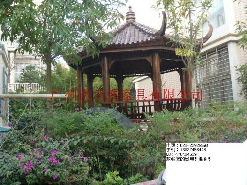 3.炭化木凉亭a)根据情况一般配有地板,柱子与柱子之间也会有有坐板、靠背相连。靠背采用弧形做法的话,使人靠上去舒适自然。b)同时配有古典窗格起到装饰和加固作用。c)做工精细的话,顶盖一般配有翘角的部分可以做到大幅度翘曲,美观大方。或是选择纯手工雕刻的龙头翘角等代表吉祥如意。立柱上也可以选择配上纯手工雕刻的凤雕或狮雕等,美轮美奂。