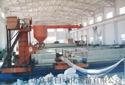 缠绕机、固化站、修整机、全液压龙门脱模机五个部分组成。控制加砂缠绕机的控制中心采用plc(可变成控制器),只需把所缠绕产品的参数输入进去,微机即可自动完成产品缠绕线型的设计,然后控制模具转速与小车行走的复合运动。