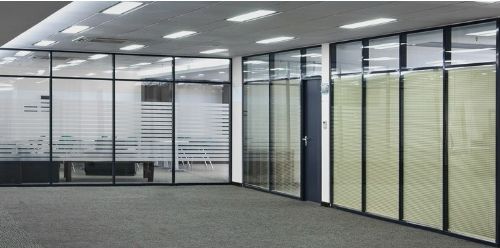 玻璃隔断框架的铝合金是挤出成型,抗撞击、耐震性强,且可回收再利用
