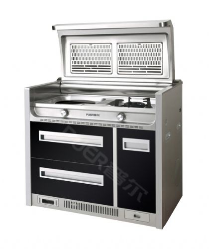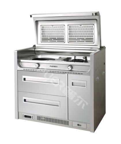 不锈钢或黑钛金材质,集烟腔、灶面板、正面材料采用进口