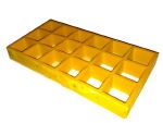 玻璃纤维作增强材料,不饱和聚酯树脂作基体,通过玻璃纤维交错编织树脂浇注整体模压而成。制品由若干对称的格子组成,在纵横方向上具有双向同性的特征。