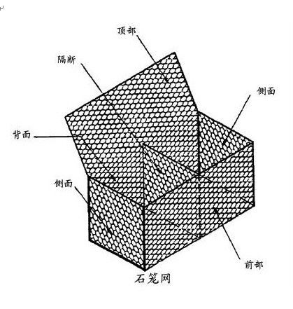六角网)制成的网箱,使用的金属线径是根据六角形的大小而不同。如果是金属镀层的金属线六角形,则使用线径为2.0mm到4.0mm的金属线,如果是PVC包覆的金属线编织的六角网,则使用外径为3.0mm到4.0mm的PVC(金属)线.外框边缘的线则使用比六角网线粗一号的线。