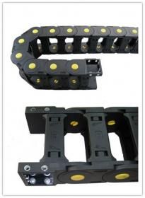 塑料拖链(塑料工程拖链)内部高度从10-80(mm)不等,宽度从10-350(mm)不等,根据您想要保护的线缆的尺寸和线缆的数量来确定。拖链的使用强度主要和原料中所含的尼龙含量有关系。所以工程塑料拖链又分为普通型工程塑料拖链和增强型工程塑料拖链。
