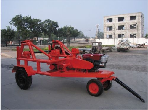柴油机、汽油机、电动机)带动减速装置,将力传到穿大线轴的通轴上,使线轴转动将线卷到线轴上收回。导线、缆线不分粗细型号,如需整棵收回,选择适合的线轴即可。