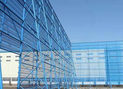用途:主要用于煤矿、焦化厂、电厂等企业工厂的储煤场;港口、码头储煤场及各种料场;钢铁、建材、水泥等企业各种露天料场;农作物防风,沙化天气防尘等恶劣环境;铁路、公路煤炭集运站储煤场、建筑工地、道路扬尘、高速公路两侧等。单层挡风抑尘墙抑尘效果可达65~85%,双层挡风抑尘墙效果可达95%以上;挡风抑尘墙不仅外形美观,维护成本低并且具备防火,防盗等优点;完全避免了以往表面覆盖、喷淋技术、全封闭几种措施反复投资、耗资巨大、受场地和作业要求限制、抑尘效果不佳的问题。