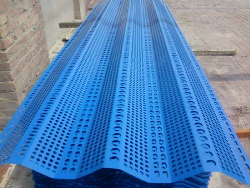 此产品采用金属原材料经机械组合模具冲孔、压制、喷塑而成,具有强度高、韧性好、抗弯曲、抗老化、抗阻燃、耐高低温、耐酸碱、承受弯曲变形能力强等优良性能;经过特殊配方和工艺制作,可根据用户需要制成各种厚度、颜色,具有使用寿命长、色彩鲜艳不易褪色等特点;综合抑尘效果良好,优于国内外同类产品。防风抑尘网不仅外形美观,维护成本低并且具备防火,防盗等优点;完全避免了以往表面覆盖、喷淋技术、全封闭几种措施反复投资、耗资巨大、受场地和作业要求限制、抑尘效果不佳的问。此项技术造价低、设置灵活、安装简单。一次投资,长期受益。挡风抑尘墙设置后不仅使污染严重的地区环境得到有交的改良,而且实施挡风抑尘墙的煤场每年还节省煤数千吨,在取得良好社会效益的同时又获得了*大的经济效益,美观整齐的挡风抑尘墙也成为这些地区一道怡人的风景线!