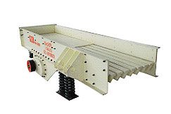 破碎机前均匀输送大块物料而设计的新型振动给料机。震动