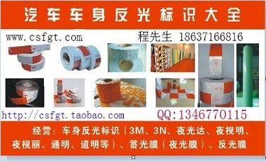 反光标识是为增强车辆的可识别性而粘贴在车身表面的高亮度反光材料的组合,当光线 照射到其表面上时,相当大部分光线能够被反射回来。国家出台各项“车身反光标识”的标准和强制性 实施建议,*大因素是为了减少交通事故的发生,而减少生命和财产损失是当前各国都面临的严峻的实 际问题。各项研究试验表明,车身反光标识在夜间能起到良好的反光效果,白天也能让车身更醒目,而 且效果还不受天气灰尘在表面的堆积及外力碰撞等环境的影响。