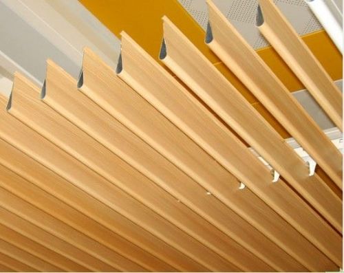 出现后的再一铝质天花产品,其用0.6MM以上的一定宽度的铝皮来折弯成型后,经过喷涂处理,现在已经应用到很多场所上去,其效果比较有立体感,大面积安装后,从远处效果很有震撼力,很有一种置身于立体图像的感觉。
