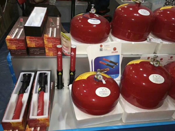 (9)灭火原理:由于充装的灭火剂粒径小,流动性好,有良好抗复燃性、弥散性和电绝缘性,其灭火机理是以化学灭火为主,通过化学、物理双重灭火机能扑灭火焰:从物理上实现了被保护物与空气的隔绝,阻断再次燃烧所需的氧气,以物理方式防止复燃;化学方面,自动灭火装置释放出的超细干粉灭火剂粉末通过与燃烧物火焰接触,产生化学反应迅速夺取燃烧自由基与热量,从而切断燃烧链实现对火焰的扑灭,灭火剂与火焰反应产生的大量玻离状物质吸附着在被保护物表面形成一层隔离层;因此既能应用于相对封闭空间全淹没灭火,也可用于开放场所局部保护灭火。
