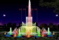 ,由计算机控制,集声、光、色为一体,喷头灯光伴随着优雅的乐曲,梦幻般的起伏,交叉生辉,构成一幅五彩缤纷、优美动人的场景,热烈欢乐的水姿,令人心旷神怡,叹为观止,留恋往返。