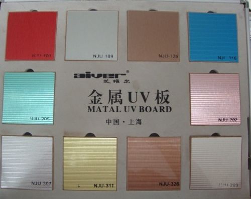 氧化铝,色泽均匀,光洁平整,耐污染腐蚀,抗热耐冷. 金属UV板在原有金属板的基础上,加固表面耐划度,不易划伤,板材表面更平整,色泽亮丽饱满,附着力更强,金属UV板不仅提升金属板的价值,美观,而且双面应力面保持平衡,不易变形,使得厨房更易打理,是居家装饰材料中的*。金属浮雕板:是我公司设计,研发出的新型高质量UV板,特点在于板面浮雕图案成立体式效果,有花朵,水波纹,祥云,小米粒和瓦楞等上千种款式,色彩艳丽丰富,图案美观大方;表面处理方面采用了真正的金属烤漆,经过两百四十多度的高温所治;使工艺跟汽车外壳一样效果,达到耐候性很好,抗风吹/雨淋/紫外线等,室内使用更不易变色;在双面金属上,在