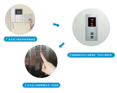 电力载波系统:可实现户内智能呼梯、访客智能派梯功能。户内智能呼梯:业主出门时,按家中的智能呼梯按钮,电梯自动向业主所住楼层停靠,业主出门乘梯,从而有效减少业主侯梯时间。访客智能派梯:访客来访,业主应答并为访客开放单元门后,按智能派梯按钮,电梯自动向一层停靠,同时,业主所住楼层按键解锁,访客进入电梯后,可直接按键前往业主所住楼层(其他楼层无权限)。