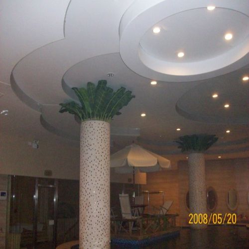 A) 表面经过防霉处理和抗雾化处理,不会因为潮湿而发霉或有凝结水,大大优于传统天花,尤其适合游泳池、桑拿等水气重的地方使用。