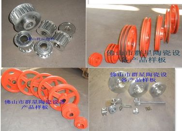 皮带轮,属于盘毂类零件,一般以铸造、锻造为主。一般尺寸较大的设计为用铸造的方法,材料一般都是铸铁(铸造性能较好),很少用铸钢(钢的铸造性能不佳);一般尺寸较小的,可以设计为锻造,材料为钢。皮带轮主要用于远距离传送动力的场合,本公司所制造的皮带轮主要用于陶瓷设备,如施釉线,
