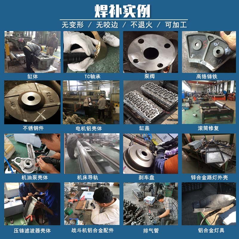 不锈钢等)、有色金属(铜、铝等)进行焊补。