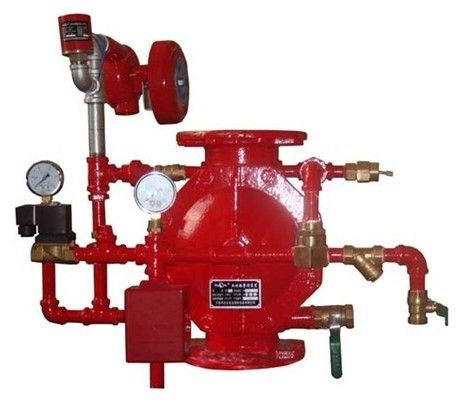 针阀及控制管路等组成。配以开式喷头、水幕喷头、闭式喷头及火灾报警控制系统即可组成相应的水喷灭火系统。具有结构简单、操作容易、安全可靠、安装维护方便等特点。失火时,雨淋阀开启,系统开式喷头一齐自动喷水灭火处火源,而且可以同时自动向整个被保护的面积上喷水,从而防止火灾的蔓延和扩大。适用于易结冰或需重点保护的火灾危险性大的建筑物和场地。