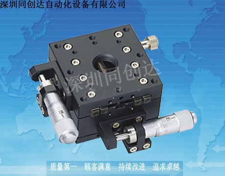 螺母内;下角座的竖向座设置有竖向导轨,竖向导轨上套设上角座,上角座的竖向座内开槽,槽内设置有竖向螺杆,竖向螺杆的下端与螺杆支板相抵触,并穿设在上角座内面的竖向螺母内;上角座的水平座上设置有燕尾槽,燕尾槽内套设有工作台面下底的滑块,滑块内开槽,槽内设置有横向螺杆,横向螺杆外端连接转动手柄,内端套设在工作台底部的横向螺母内。