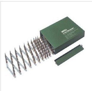 路障阻车器由铝合金条活动支座、硬质压铸锌三角棱刺针构成。铝合金条由钢制