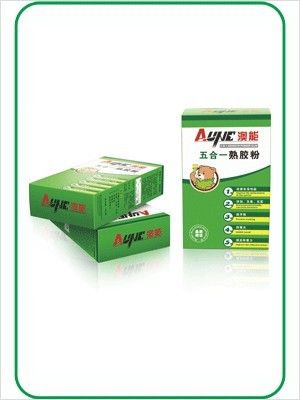 取五合一熟胶粉400克加入约16公斤之清水中,不停搅动5至15分钟,静置半小时,即成为优良之胶浆;