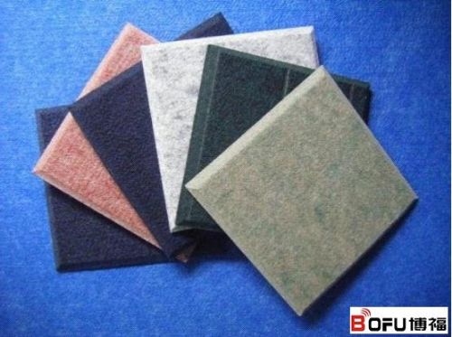 聚酯纤维吸音板有10多种颜色,可以拼成各种图案。表面形状有平面、方块(