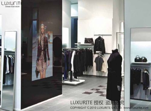 三者兼具一身,镜面电视的实现是基于液晶显示屏幕上加了一块双向镜面,这种镜面玻璃并非平时所看到的普通玻璃或镜面,而是通过特殊设计可以控制光线出入的镜面。镜面电视开启时,反面通过高端 LCD 引擎传送高清画面,这种特别设计可控制通过的光线使观看者欣赏到和电视完全一样的高清晰画面;镜面电视关闭时,它回归成一面平滑光亮的镜子,莱克斯瑞就是使用这样一种特殊而先进的迭片结构使这种完美转换成为可能。