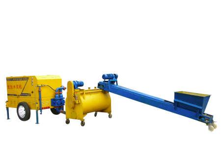 发泡机把水泥和水在搅拌斗内按一定比例搅拌成水泥浆,通过液压输送缸压送到
