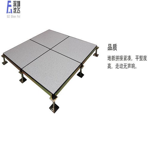 发泡水泥填料,支架为镀锌及铸铝合金结构,高度可调节并能自锁,地板四周成型有切边与铆接两种。由于智能化楼宇配线复杂,功能齐全,故出线接口繁多。该地板配有双面出线口,避免了合金