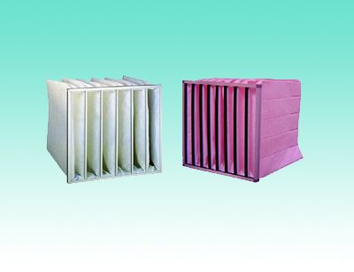 V型组合式过滤器 系列产品为V型的亚高、高效过滤器,这款产品是专为在低阻力下达到大风量需求设计开发的。V型 的高效率系列可以在 250Pa 初阻力的情况下风速达到 2 . 5m / s. V 系列的过滤器的滤料选用的是进口的超细玻璃纤维,滤料经无隔板技术折叠成型后放在 v 型的框架内。