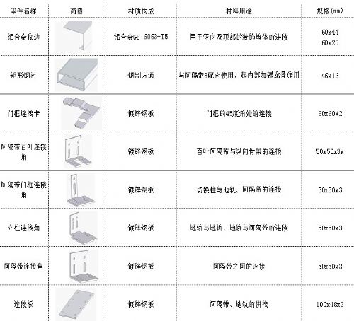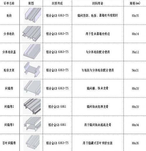 隔断(墙)材料概括来讲,主要由:内外型材、表面饰材和配套材料组成。