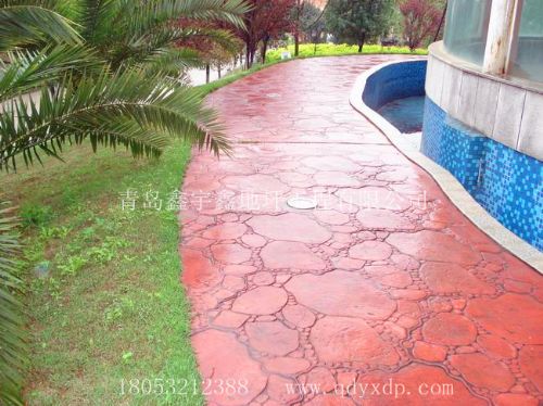 1、 该材料为彩色颗粒粉状,里面含有特种水泥成分,与砼同步施工。在砼未凝固前便撒在砼的表面,因此能与基础砼完全粘结在一起,形成彩色的高强度、耐磨的硬化路面,抗压强度可达到80MPA以上。