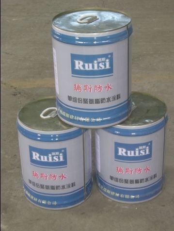 填料经聚合反应制成的,使用时涂覆于防水基层,通过聚氨酯预聚体中的—NCO端基与空气中的湿气接触后进行的化学反应,在基层表面形成坚韧、柔软、无接缝的橡胶防水膜。
