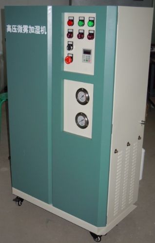 喷嘴,在高水压的挤压下产生高速旋转,以5-10μm水雾粒子喷射到整个空间,水雾在空气中吸收热量,汽化、蒸发,空间湿度增大,空气的温度降低。适用于纺织、卷烟、电子、工业除尘、酿造、印刷等产业的大空间整体或局部加湿、降温、降尘、消除静电以及空调段加湿。