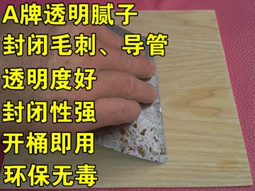 A牌透明腻子封闭实木或实木贴皮等木制品表面的毛刺及凹纹导孔等。
