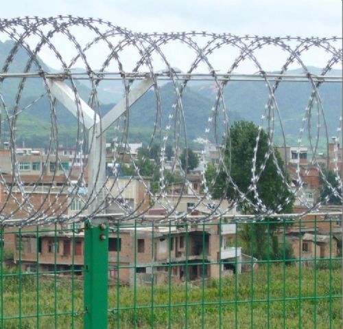 刀片刺网与普通防护网的结合,由V型支架立拄,加强型焊接片网,安全防盗
