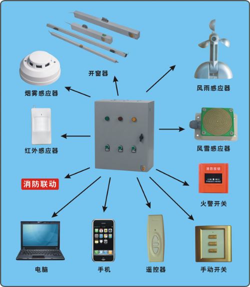 带手机远程控制;可外接风雨感应器、温度感应器、人体感应器、煤气感应器等;预留通讯接口和消防接口,可与智能家居中心及消防中心联动;可带蓄电池,停电后24小时内正常工作。