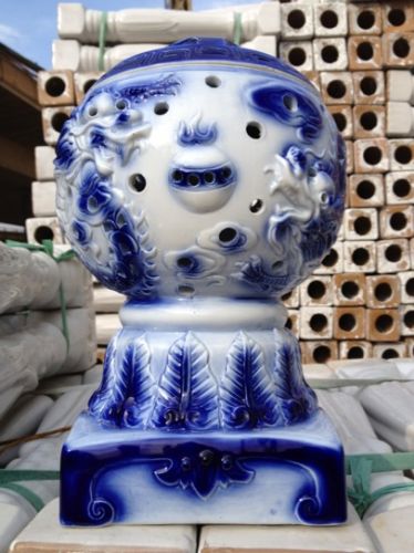 双龙夺宝盘旋于圆球上面。底座内空,可以灌水泥,也可以用
