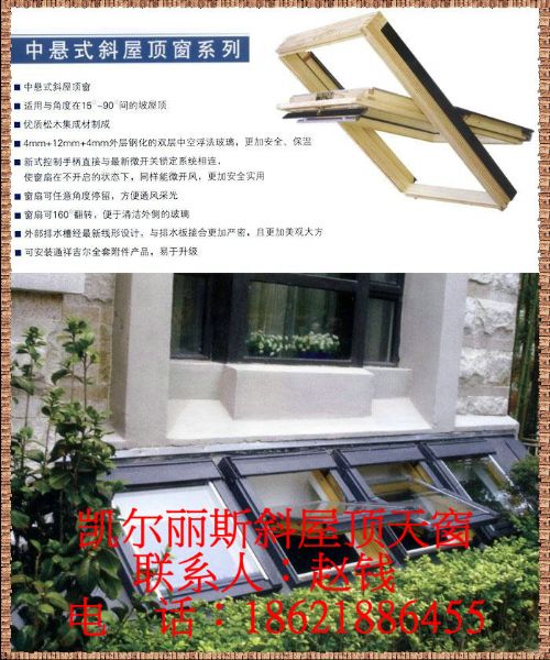 4、凯尔丽斯斜屋顶天窗采用中旋开启方式,便于气流回旋进入室内,即使隆冬季节也不会使寒风扑面,而是柔和地使室内空气变得清新;便于天窗的开关和内外侧玻璃的清洁