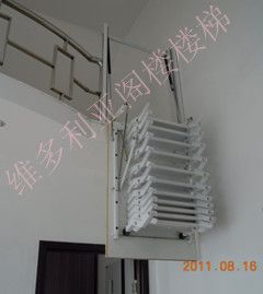 剪刀一样可以折叠的金属梯.现代化的折叠系统使得它可以折叠到一个更短的长度,从而可以减小开口门的大小.特殊设计的楼梯倾角调节装置保证楼梯具有高可调性而不必缩短.美家阁楼梯将为您提供简单而安全通向阁楼的通道。楼梯所采用的伸缩结构可以使楼梯折叠在一起。