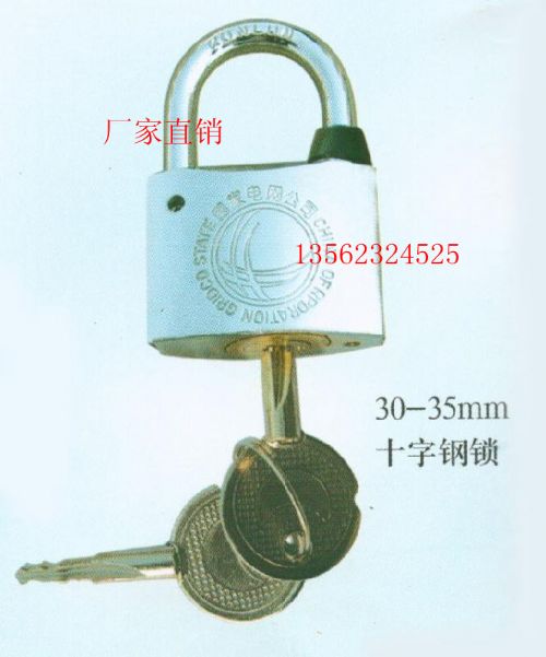 十字电力专用铜锁,十字塑钢横开长钩子母锁