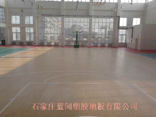 3:表面经特殊处理,与灯光亮度吻合,不会吸光和反光刺眼,能更好的保护运动员的眼睛,不易产生疲劳,总厚度达3.5mm以上,配以适当发泡底层为缓冲层,使其更具有减震性和反弹。有效地减轻了运动员的腿部冲击力,脚感舒适,更好的避免了运动损伤,提高运动员水平的发挥。