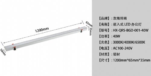 7、嵌入式LED长条办公灯尺寸1200*65*35mm。