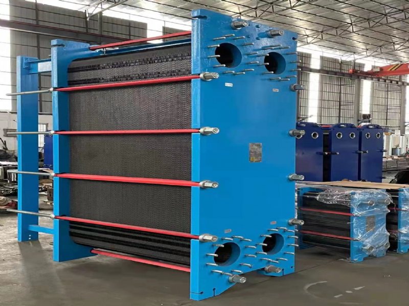 板式换热器是由一组波纹金属板组成,板上有四个角孔,供热交换的两种液(气)体通过。金属板片安装在一个侧面有固定板和活动压紧板的框架内,并用夹紧
